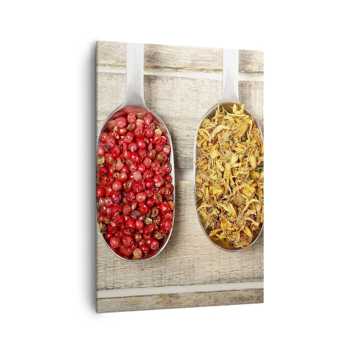Cuadro sobre lienzo - Impresión de Imagen - Tres cucharas de metal con especias sobre un fondo de madera. - 70x100cm - La magia de la cocina - Decoración de pared moderna para salón y dormitorio ARTTOR