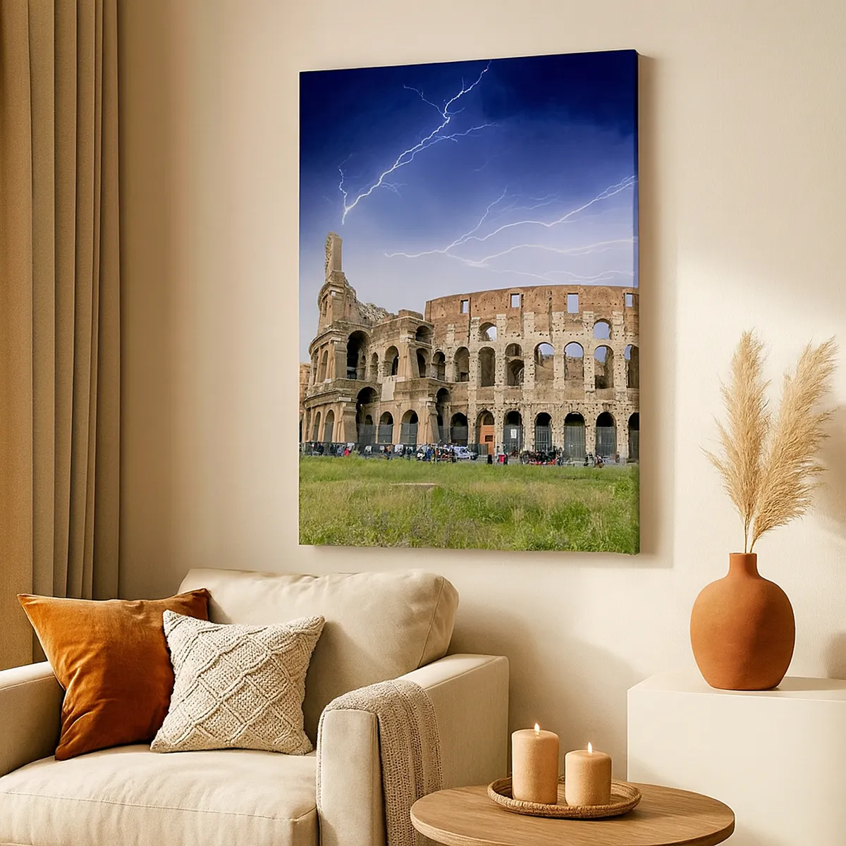 Cuadro sobre lienzo - Impresión de Imagen - El Coliseo de Roma iluminado por un rayo - 70x100cm - Arena de guerreros - Decoración de pared moderna para salón y dormitorio ARTTOR
