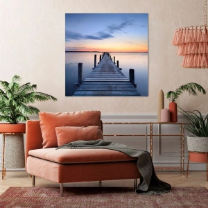 Cuadro sobre lienzo - Impresión de Imagen - Muelle de madera en el lago al atardecer - 50x70cm - La calma de un crepúsculo sereno - Decoración de pared moderna para salón y dormitorio ARTTOR