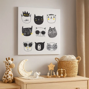 Cuadro sobre lienzo - Impresión de Imagen - Ilustraciones de gatos con estilo minimalista - 70x100cm - Cada uno diferente - Decoración de pared moderna para salón y dormitorio ARTTOR