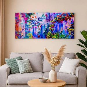 Cuadro sobre lienzo - Impresión de Imagen - Una calle colorida y llena de flores. - 70x100cm - Impresión - una calle italiana - Decoración de pared moderna para salón y dormitorio ARTTOR