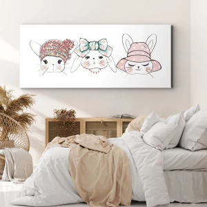 Cuadro sobre lienzo - Impresión de Imagen - Adorables conejitos con tocados en tonos pastel - 50x70cm - Reflexión, tristeza, alegría - Decoración de pared moderna para salón y dormitorio ARTTOR