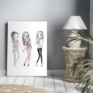 Cuadro sobre lienzo - Impresión de Imagen - Ilustración de chicas de moda en colores pastel. - 50x70cm - Es día de chicas - Decoración de pared moderna para salón y dormitorio ARTTOR