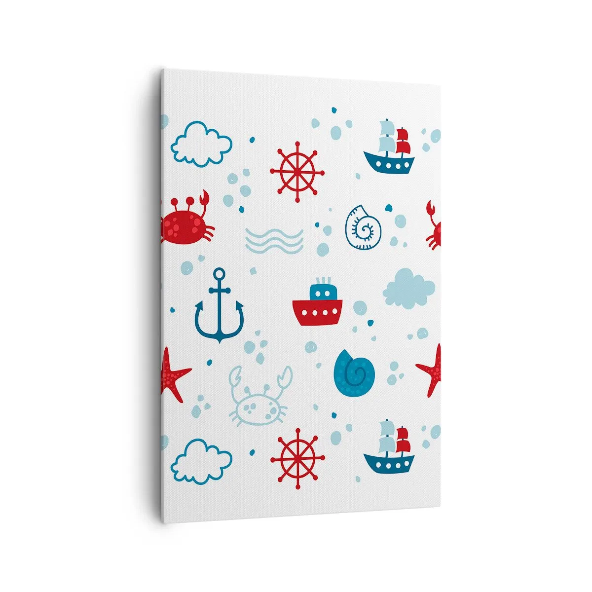 Cuadro sobre lienzo - Impresión de Imagen - Patrón náutico con anclas, barcos y cangrejos. - 70x100cm - Un cuento de mar - Decoración de pared moderna para salón y dormitorio ARTTOR