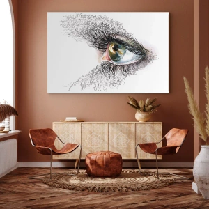Cuadro sobre lienzo - Impresión de Imagen - Un ojo artístico con un iris de color verde amarillento y detalles intrincados. - 80x120cm - Mira directamente a tu alma - Decoración de pared moderna para salón y dormitorio ARTTOR