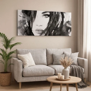 Cuadro sobre lienzo - Impresión de Imagen - Retrato de una mujer en acuarela en blanco y negro - 80x120cm - Retrato de una dama en blanco y negro - Decoración de pared moderna para salón y dormitorio ARTTOR