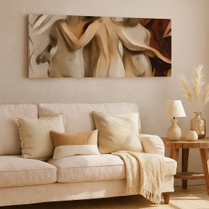 Cuadro sobre lienzo - Impresión de Imagen - Una escena abstracta con tres figuras en colores cálidos. - 70x100cm - Las tres Gracias 2.0 - Decoración de pared moderna para salón y dormitorio ARTTOR