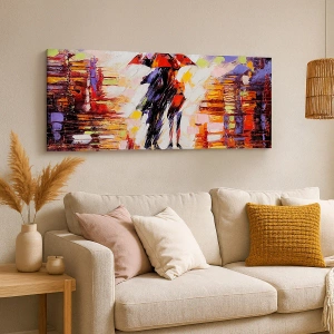 Cuadro sobre lienzo - Impresión de Imagen - Una escena abstracta de un paseo bajo un paraguas en una noche lluviosa. - 50x70cm - Juntos a través de la noche y la lluvia - Decoración de pared moderna para salón y dormitorio ARTTOR
