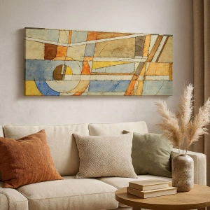 Cuadro sobre lienzo - Impresión de Imagen - Abstracción geométrica en tonos beige, azul y naranja. - 70x100cm - Cubismo en una obra - Decoración de pared moderna para salón y dormitorio ARTTOR