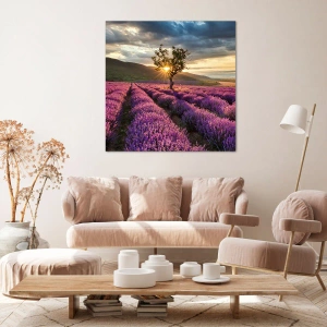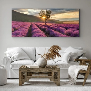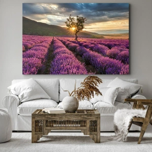 Cuadro sobre lienzo - Impresión de Imagen - Un campo de lavanda con un árbol solitario al atardecer. - 50x70cm - Aroma en lila - Decoración de pared moderna para salón y dormitorio ARTTOR