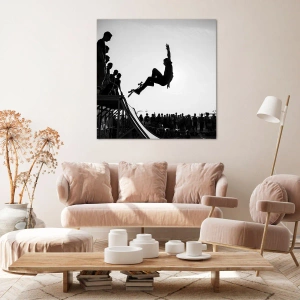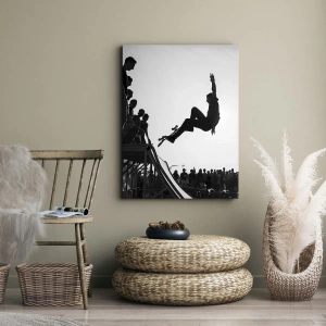 Cuadro sobre lienzo - Impresión de Imagen - Escena de skate en blanco y negro en una rampa - 50x70cm - Héroes y espectadores - Decoración de pared moderna para salón y dormitorio ARTTOR
