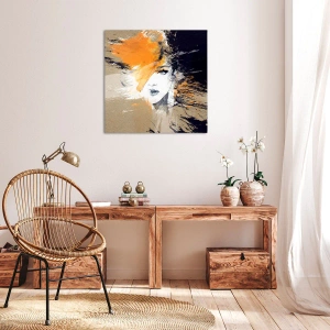 Cuadro sobre lienzo - Impresión de Imagen - Retrato abstracto de una mujer con colores intensos. - 50x70cm - Y se convierte en luz - Decoración de pared moderna para salón y dormitorio ARTTOR