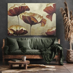 Cuadro sobre lienzo - Impresión de Imagen - Flores sutiles en tonos rojos y dorados sobre un fondo claro. - 50x70cm - Prado de prados - Decoración de pared moderna para salón y dormitorio ARTTOR