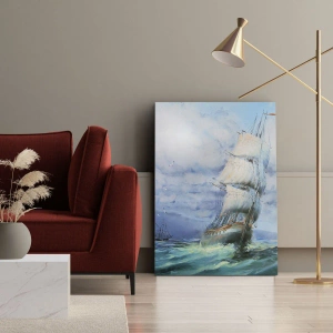 Cuadro sobre lienzo - Impresión de Imagen - Un barco en un mar tempestuoso - 50x70cm - Viento en popa - Decoración de pared moderna para salón y dormitorio ARTTOR