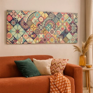 Cuadro sobre lienzo - Impresión de Imagen - Patrones geométricos coloridos inspirados en el estilo marroquí. - 80x120cm - Clima marroquí - Decoración de pared moderna para salón y dormitorio ARTTOR
