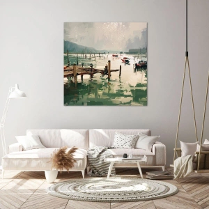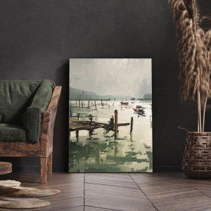 Cuadro sobre lienzo - Impresión de Imagen - Un puerto pintoresco con barcos en aguas tranquilas. - 50x70cm - Empapado en la luna fundida - Decoración de pared moderna para salón y dormitorio ARTTOR