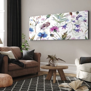 Cuadro sobre lienzo - Impresión de Imagen - Flores y hierbas de acuarela sobre un fondo blanco en estilo herbario. - 50x70cm - Herbario polaco - Decoración de pared moderna para salón y dormitorio ARTTOR