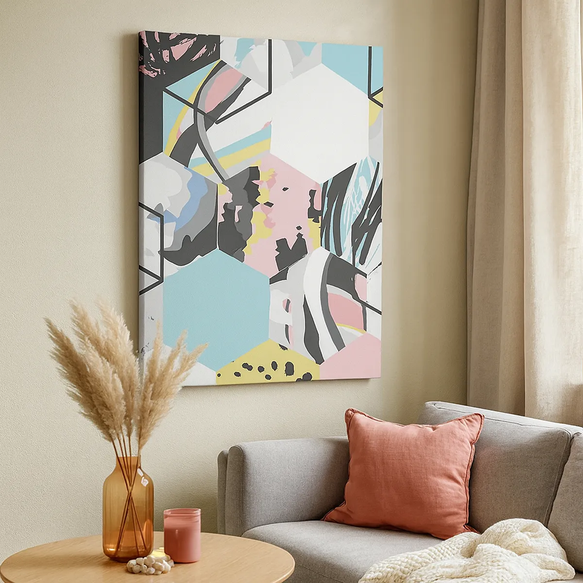 Cuadro sobre lienzo - Impresión de Imagen - Patrón hexagonal geométrico con detalles abstractos coloridos - 70x100cm - Hexágonos y cubos en seis colores - Decoración de pared moderna para salón y dormitorio ARTTOR