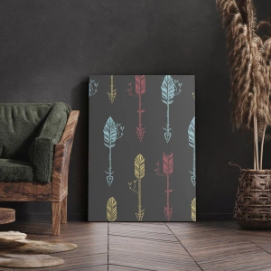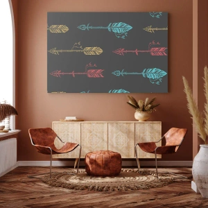 Cuadro sobre lienzo - Impresión de Imagen - Patrón de flecha estilizada en colores pastel sobre un fondo oscuro - 50x70cm - Flechas - Decoración de pared moderna para salón y dormitorio ARTTOR