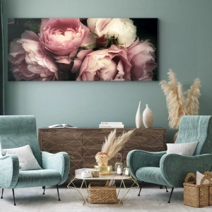 • Flores, Peonía, Ramo, botánica, flores, Para la oficina, Para el estudio, Para el comedor, Para el baño, Para el recibidor, Para el salón, Para el dormitorio, Negro, Rosa, Vertical