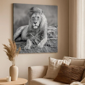 Cuadro sobre lienzo - Impresión de Imagen - León descansando sobre una roca en estilo monocromático. - 50x70cm - La siesta real - Decoración de pared moderna para salón y dormitorio ARTTOR