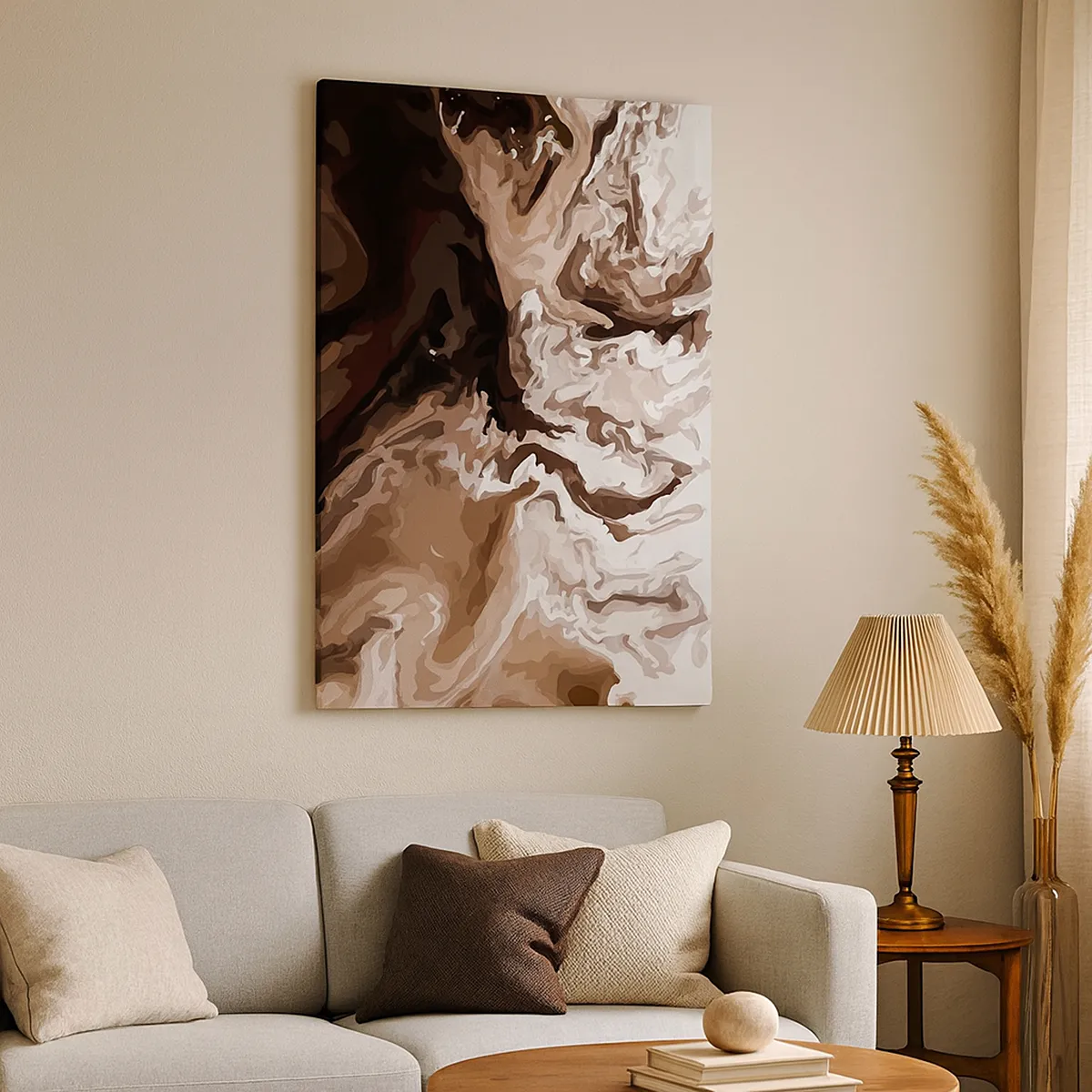 Cuadro sobre lienzo - Impresión de Imagen - Abstracción en tonos marrones con líneas dinámicas. - 50x70cm - Contenencia del color - Decoración de pared moderna para salón y dormitorio ARTTOR