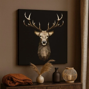 Cuadro sobre lienzo - Impresión de Imagen - Ciervo poligonal geométrico sobre fondo negro - 50x70cm - Ciervo cubista - Decoración de pared moderna para salón y dormitorio ARTTOR