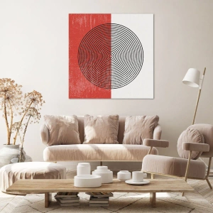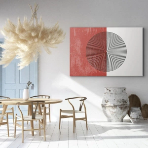Cuadro sobre lienzo - Impresión de Imagen - Patrón geométrico con círculos concéntricos sobre un fondo rojo y blanco. - 50x70cm - En el corazón de la misma - Decoración de pared moderna para salón y dormitorio ARTTOR