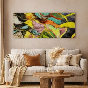 - Un lienzo moderno con una composición abstracta de manchas de color y líneas dinámicas. Un complemento perfecto para cualquier interior, aporta energía y un carácter moderno.