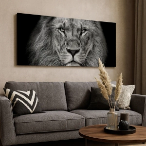 Cuadro sobre lienzo - Impresión de Imagen - Retrato de un majestuoso león en blanco y negro - 80x120cm - Con el atuendo de la coronación - Decoración de pared moderna para salón y dormitorio ARTTOR