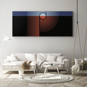 Cuadro sobre lienzo - Impresión de Imagen - Abstracción geométrica con líneas en azul marino y naranja. - 70x100cm - En un abrazo geométrico - Decoración de pared moderna para salón y dormitorio ARTTOR
