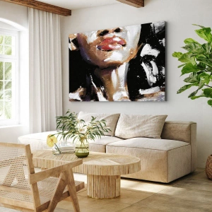 Cuadro sobre lienzo - Impresión de Imagen - Retrato de una mujer en un estilo pictórico expresivo sobre un fondo oscuro. - 50x70cm - Orgullo sin prejuicios - Decoración de pared moderna para salón y dormitorio ARTTOR