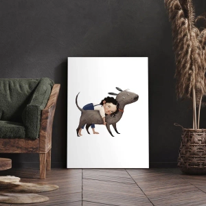 Cuadro sobre lienzo - Impresión de Imagen - Ilustración de estilo de dibujos animados de un niño abrazando a un perro. - 80x120cm - Mejores amigos - Decoración de pared moderna para salón y dormitorio ARTTOR