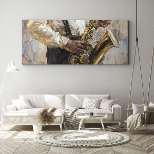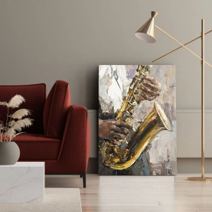 Cuadro sobre lienzo - Impresión de Imagen - Un músico tocando el saxofón con un estilo artístico. - 50x70cm - Llegó el momento del solo - Decoración de pared moderna para salón y dormitorio ARTTOR