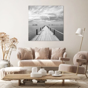 Cuadro sobre lienzo - Impresión de Imagen - Un muelle de madera que se pierde en la distancia sobre un mar en calma. - 80x120cm - Hora de viajar - Decoración de pared moderna para salón y dormitorio ARTTOR