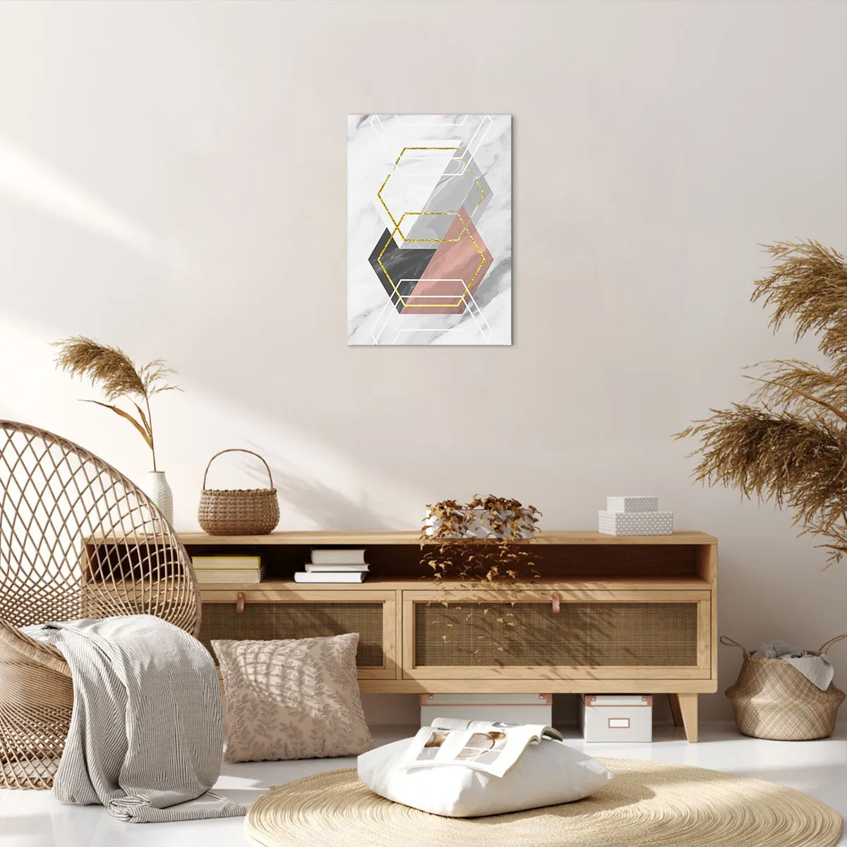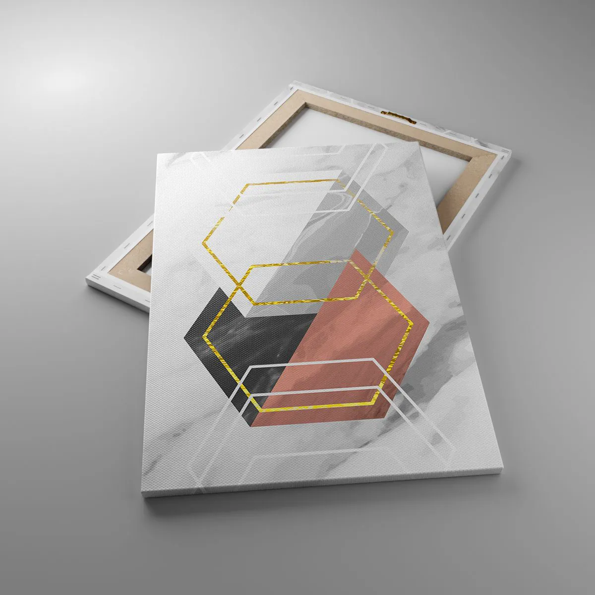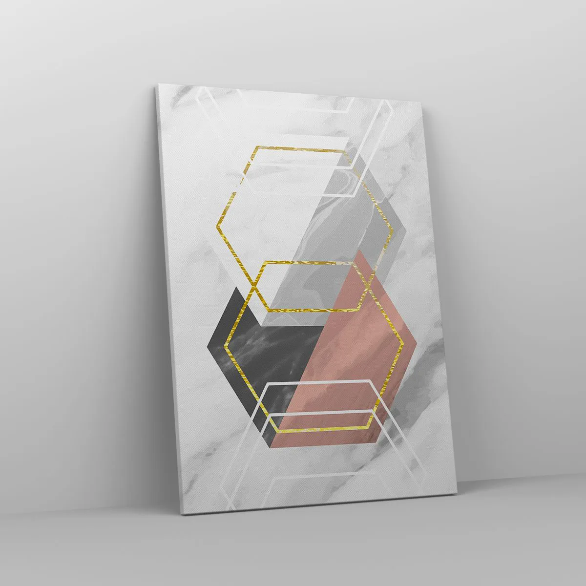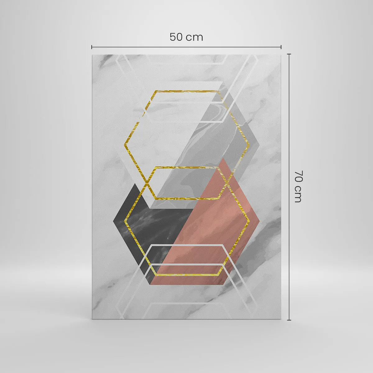 Cuadro sobre lienzo - Impresión de Imagen - Figuras geométricas con acentos dorados y de mármol. - 50x70cm - Composición en cadena - Decoración de pared moderna para salón y dormitorio ARTTOR