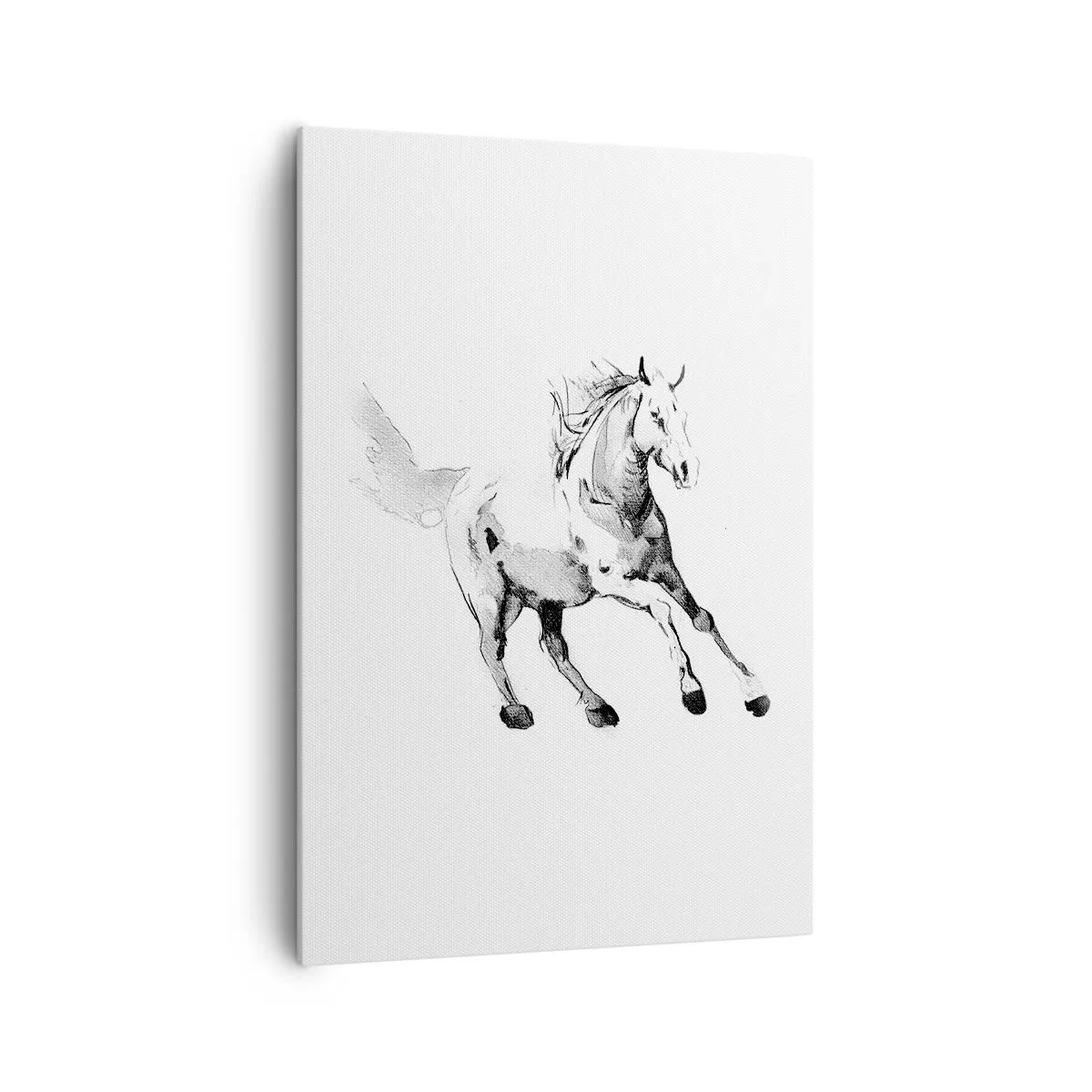 Cuadro sobre lienzo - Impresión de Imagen - Boceto de un caballo al galope en tonos de blanco y negro. - 70x100cm - Alma indómita - Decoración de pared moderna para salón y dormitorio ARTTOR
