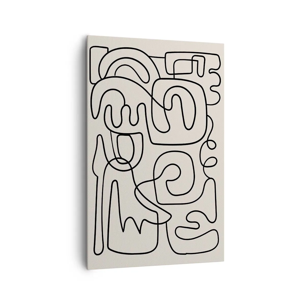Cuadro sobre lienzo - Impresión de Imagen - Patrón de arte lineal abstracto en negro sobre un fondo claro - 80x120cm - El camino correcto - Decoración de pared moderna para salón y dormitorio ARTTOR