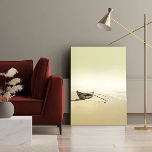 Cuadro sobre lienzo - Impresión de Imagen - Viejo barco pesquero en una playa de arena - 50x70cm - Un recuerdo de los mares del sur - Decoración de pared moderna para salón y dormitorio ARTTOR
