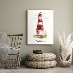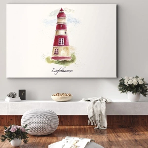Cuadro sobre lienzo - Impresión de Imagen - Una pintura de acuarela de un faro sobre un fondo claro con una inscripción. - 70x100cm - Siempre observando - Decoración de pared moderna para salón y dormitorio ARTTOR