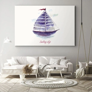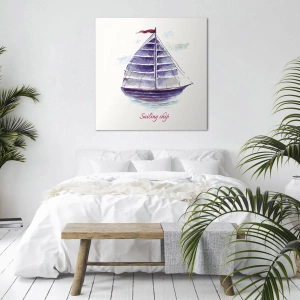 Cuadro sobre lienzo - Impresión de Imagen - Una pintura de acuarela de un velero en el agua con una delicada inscripción. - 50x70cm - Velas izadas y aguas tranquilas - Decoración de pared moderna para salón y dormitorio ARTTOR
