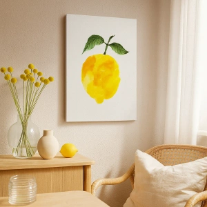 La pintura "Cómo saborear el sol" representa un limón en estilo acuarela, que deleita con su simplicidad y sutileza. Las hojas verdes y el intenso amarillo de la fruta contrastan con el fondo claro, creando una composición armoniosa y estética. Este lienzo es una excelente opción para los amantes del arte inspirado en la naturaleza, aportando ligereza y alegría al interior.