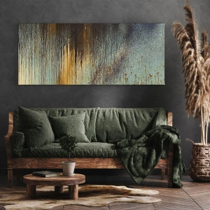 Cuadro sobre lienzo - Impresión de Imagen - Una composición abstracta de colores en tonos dorados, marrones y azules. - 70x100cm - Una composición colorista no accidental - Decoración de pared moderna para salón y dormitorio ARTTOR