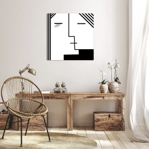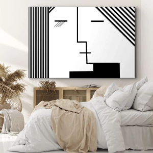 Cuadro sobre lienzo - Impresión de Imagen - Abstracción geométrica de un beso en blanco y negro. - 70x50cm - Solo un beso - Decoración de pared moderna para salón y dormitorio ARTTOR