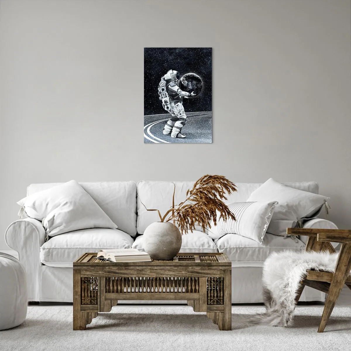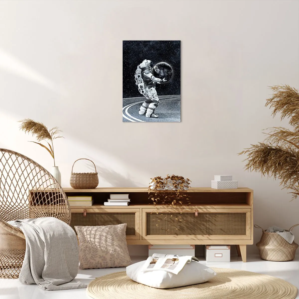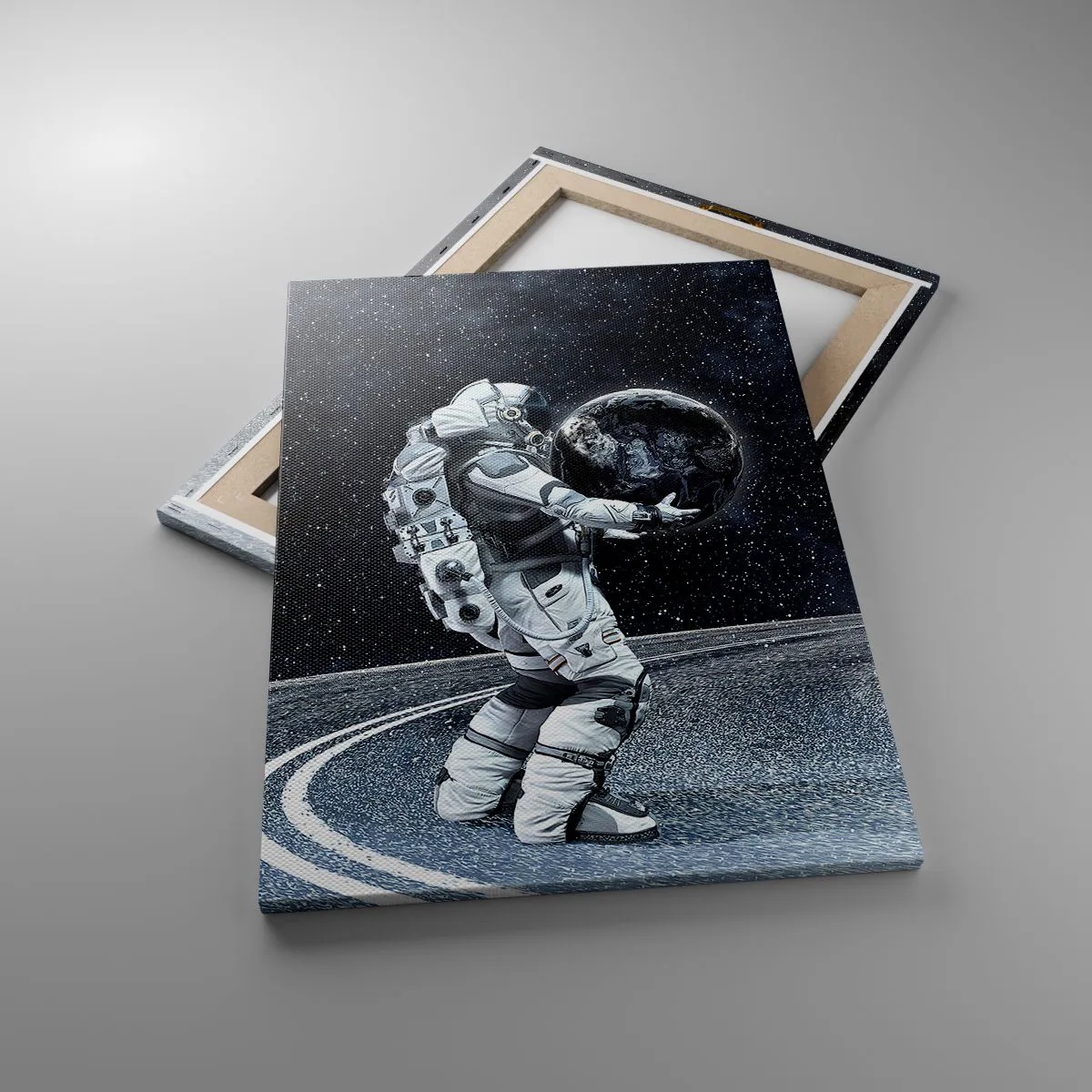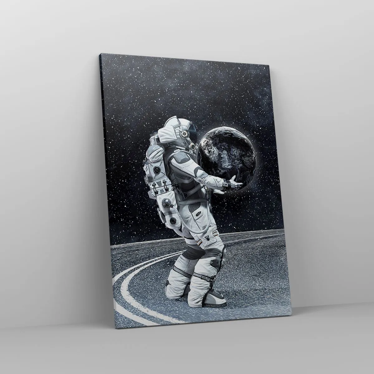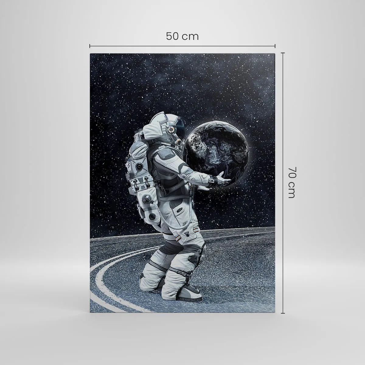 Cuadro sobre lienzo - Impresión de Imagen - Astronauta con la Tierra contra el cielo estrellado - 50x70cm - En la Vía Láctea - Decoración de pared moderna para salón y dormitorio ARTTOR