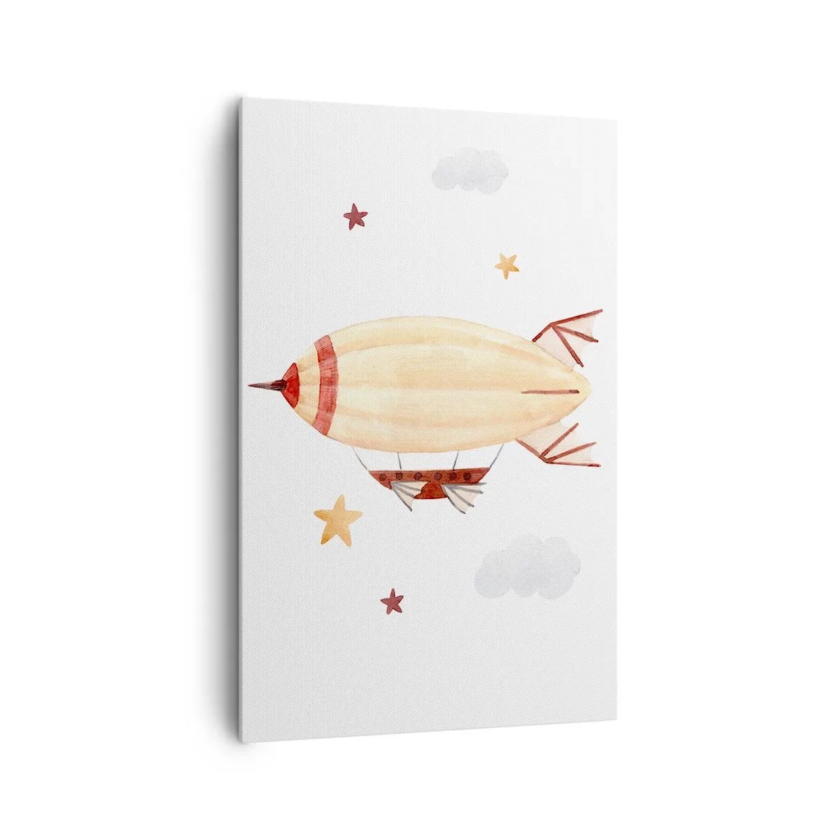 Cuadro sobre lienzo - Impresión de Imagen - Un dirigible pintado a mano con un fondo de estrellas. - 80x120cm - Dirigible - Decoración de pared moderna para salón y dormitorio ARTTOR