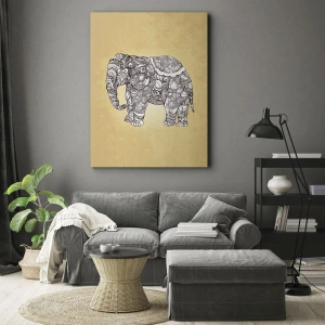 Cuadro sobre lienzo - Impresión de Imagen - Elefante dibujado a mano con un patrón ornamentado sobre un fondo beige. - 50x70cm - El elefante decorado - Decoración de pared moderna para salón y dormitorio ARTTOR