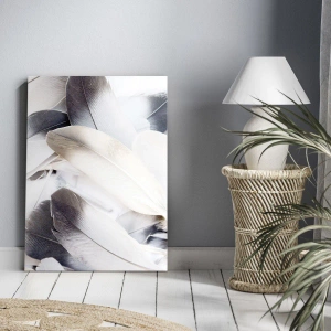 Cuadro sobre lienzo - Impresión de Imagen - Primer plano de delicadas plumas en tonos blancos y grises. - 50x70cm - Casi angelical - Decoración de pared moderna para salón y dormitorio ARTTOR