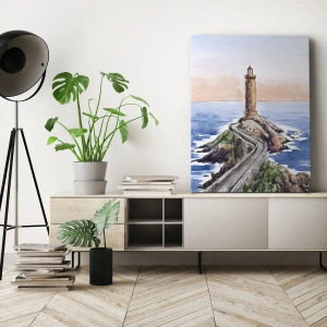 Cuadro sobre lienzo - Impresión de Imagen - Un faro en una costa rocosa - 70x100cm - Frente al mar - Decoración de pared moderna para salón y dormitorio ARTTOR