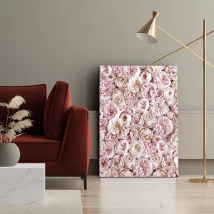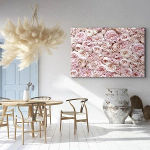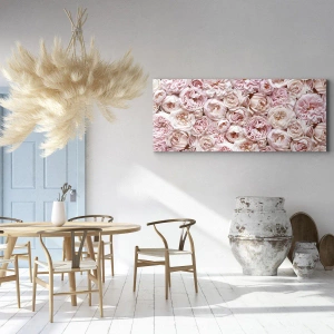 Cuadro sobre lienzo - Impresión de Imagen - Delicadas rosas en tonos rosa por toda la superficie. - 140x50cm - Salpicado de rosas - Decoración de pared moderna para salón y dormitorio ARTTOR